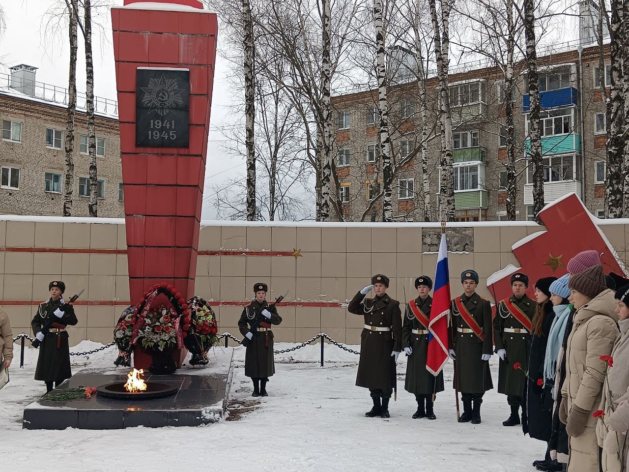 Юнармейский почётный караул у Вечного огня и знаменная группа вместе с жителями города отдали дань памяти всем Героям, которые погибли в войнах и вооружённых конфликтах разных лет.