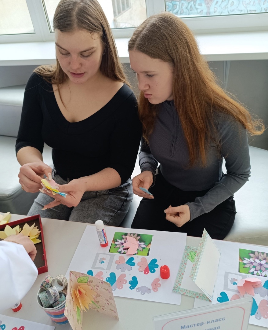 Гости семейных мероприятий смогли своими руками создать собственные символы наступившей Весны - "Солнце" и объёмную 3D-открытку с яркими цветами.