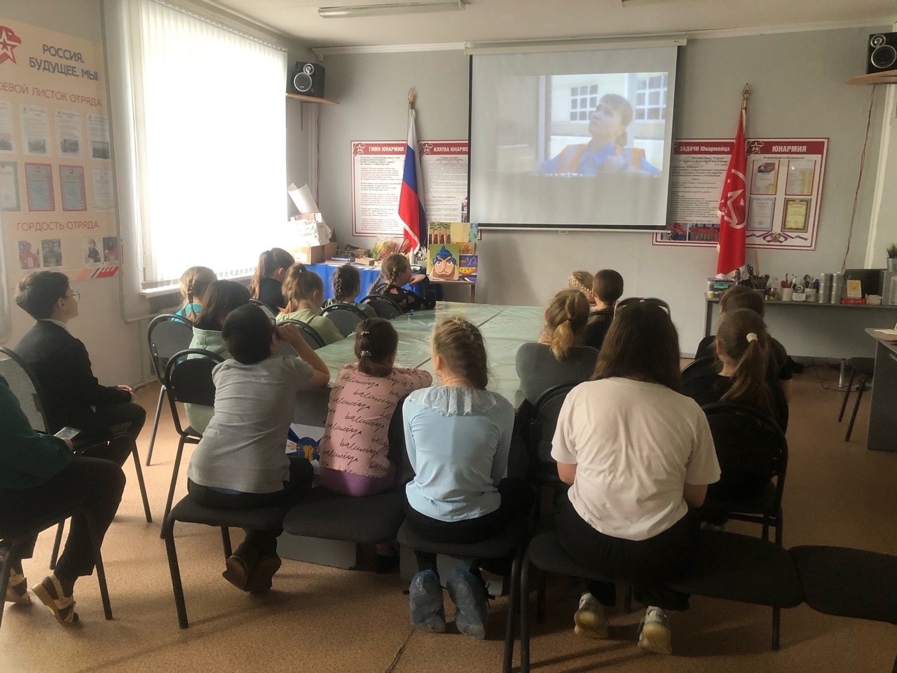 В рамках этой акции ребята просмотрели полнометражный документальный фильм "Человек труда", созданный творческим объединением "Яблоня" при поддержке Президентского фонда культурных инициатив, и обсудили важность профессий и праздника труда.
