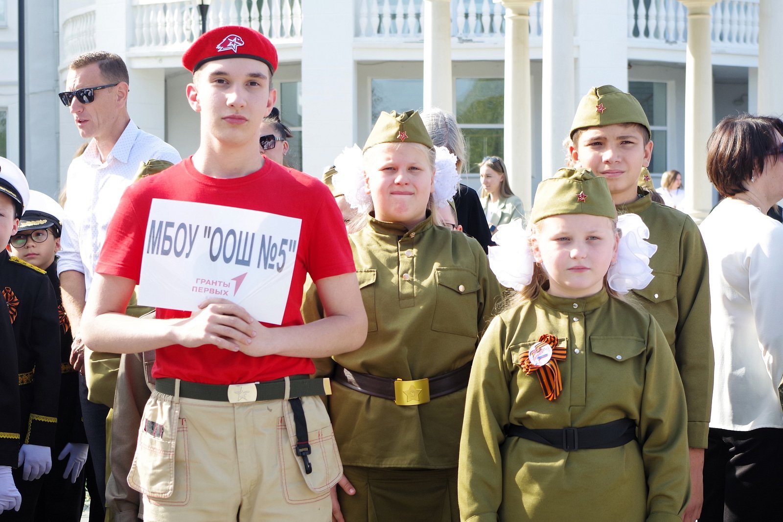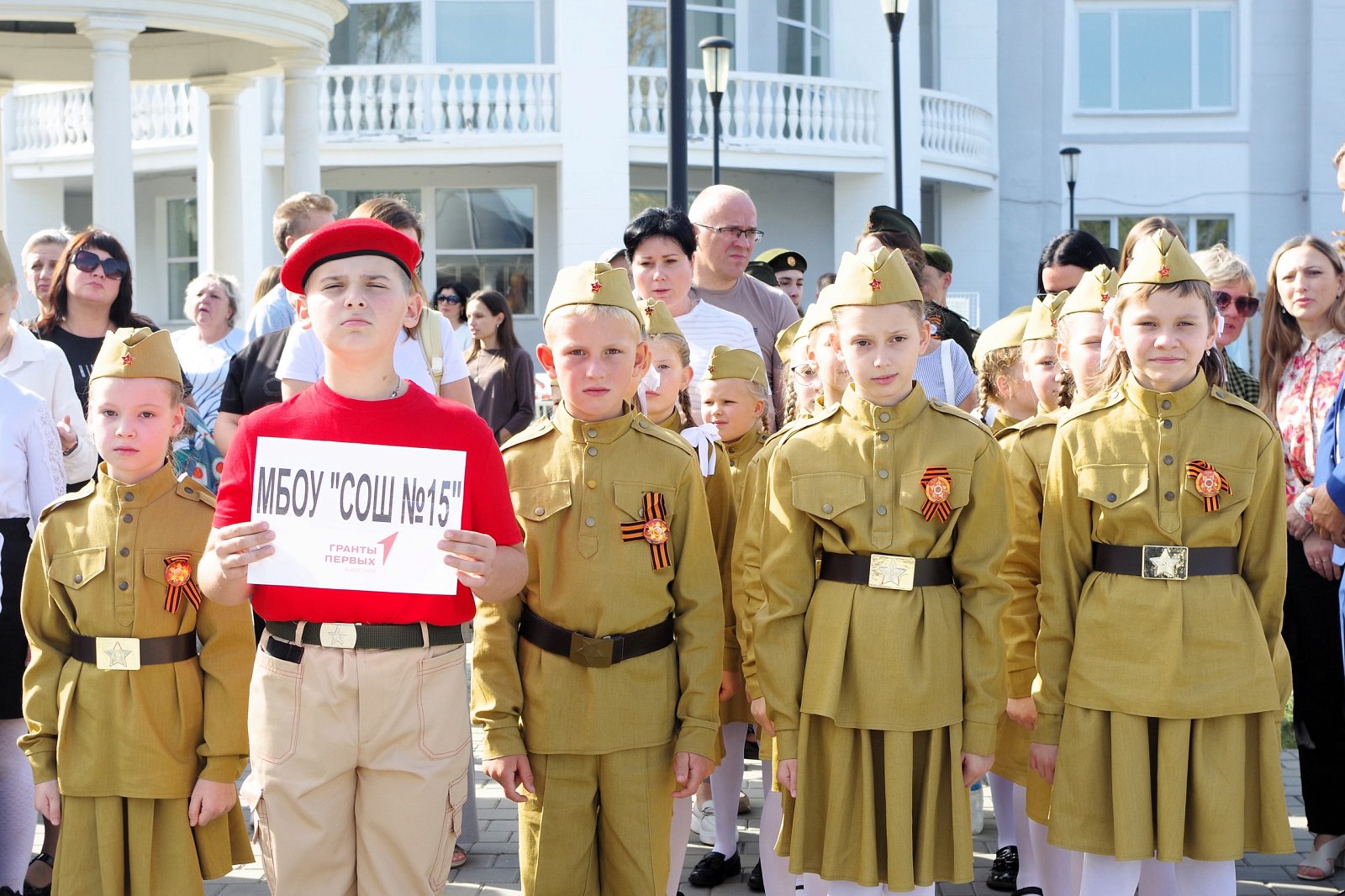 В прошедшую пятницу в Сквере у МБУДО «ДШИ им. Балакирева» состоялось главное мероприятие патриотического проекта «Победный май» Центра дополнительного образования детей «Исток», ставшего победителем Второго грантового конкурса «Движения Первых» - конкурс «Смотр строя и песни «Парад войск»».