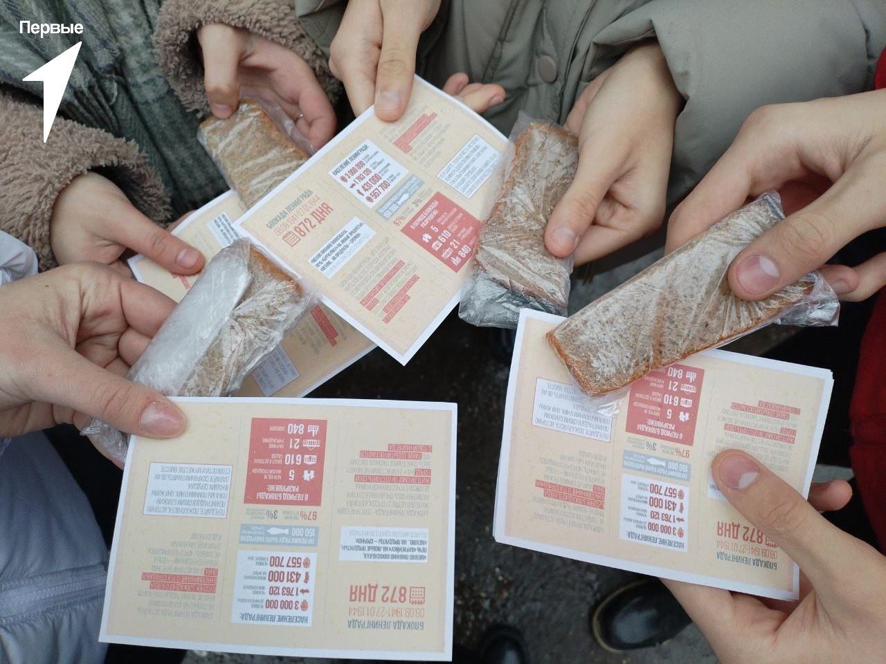 Активисты раздавали информационные листовки, в которых рассказывалось о событиях тех лет и о важности сохранения памяти о подвиге советского народа. Вместе с листовкой каждому участнику акции был вручен кусочек хлеба.