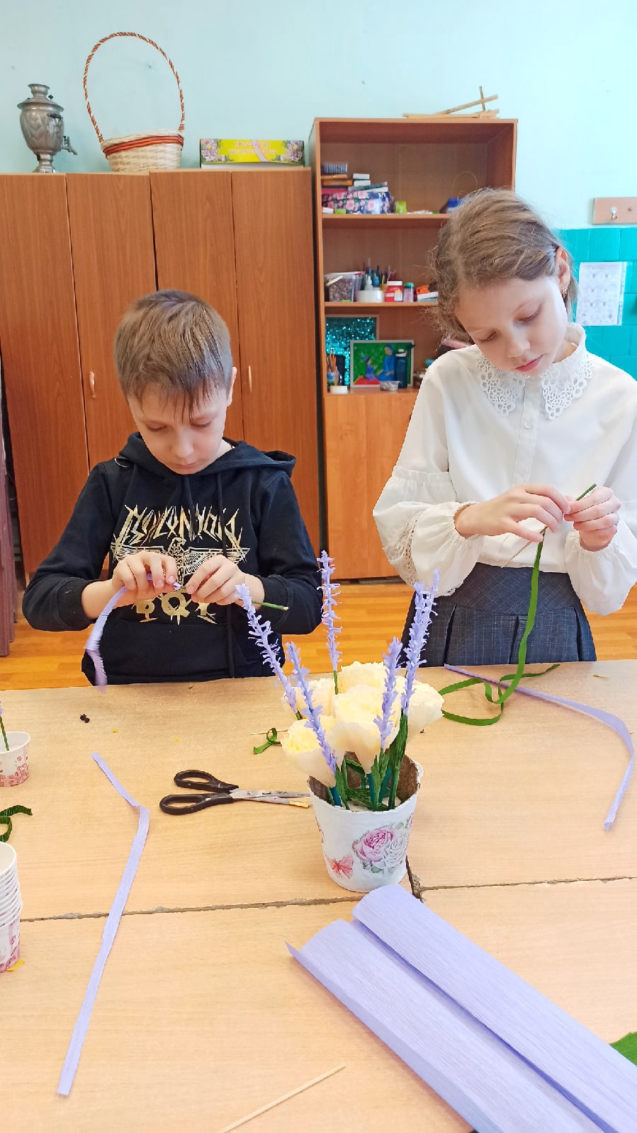 Мастер-класс от РДШ «Крымская лаванда» привлек наибольшее количество участников. Все объединения прикладного творчества присоединились к заданию и выполнили из гофрированной бумаги веточку лаванды – один из символов Крымского полуострова. В ходе проведения мастер-классов в объединениях педагоги рассказали ребятам о событиях 2014 года, когда территория республики Крым и Севастополь вошли в состав Российской Федерации.