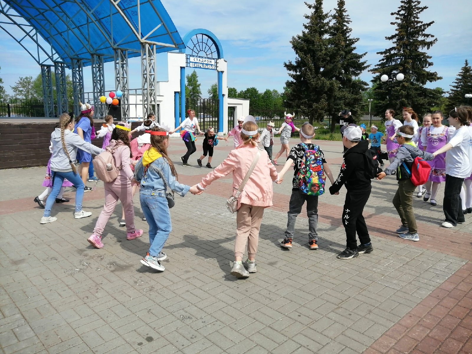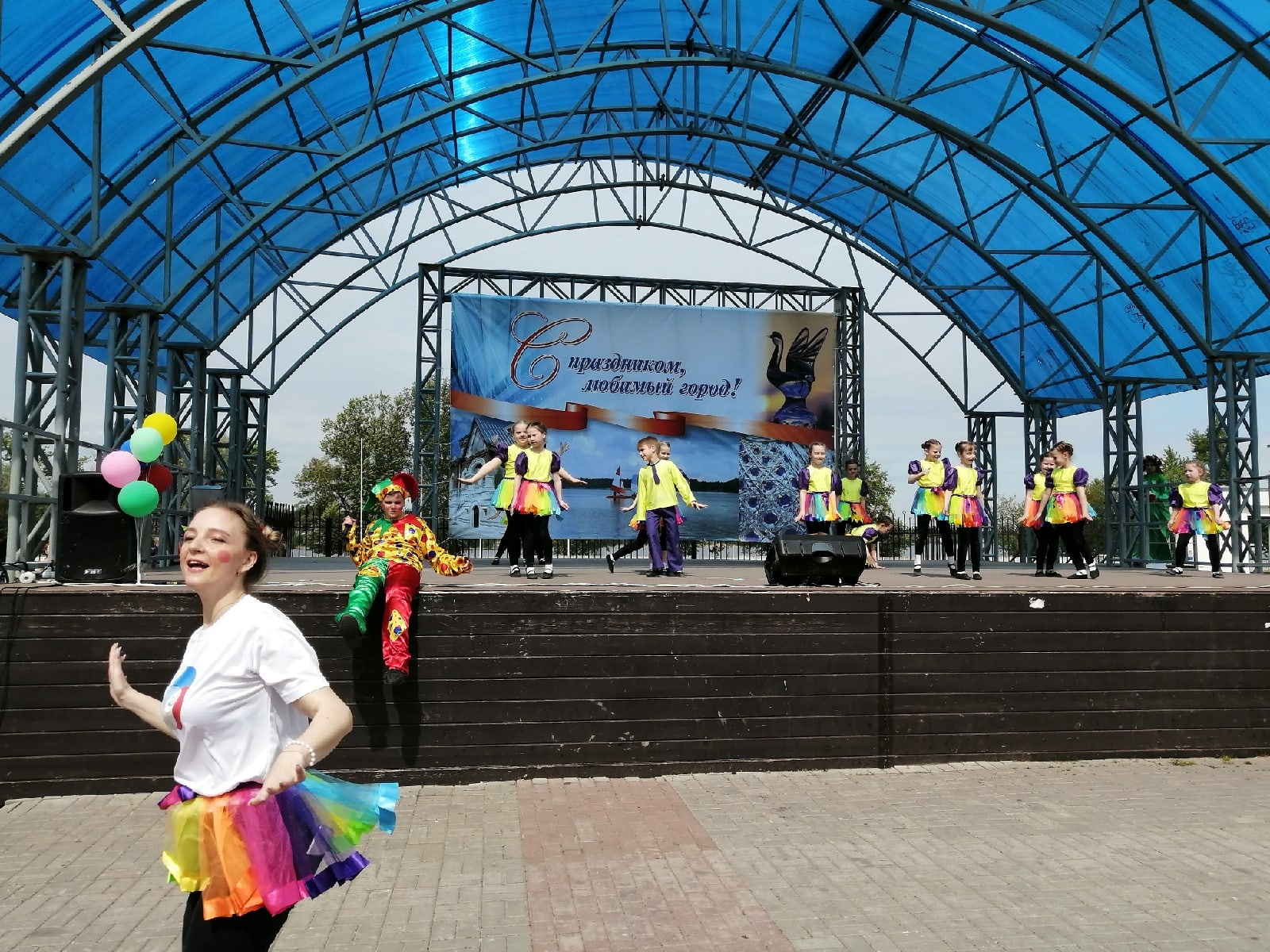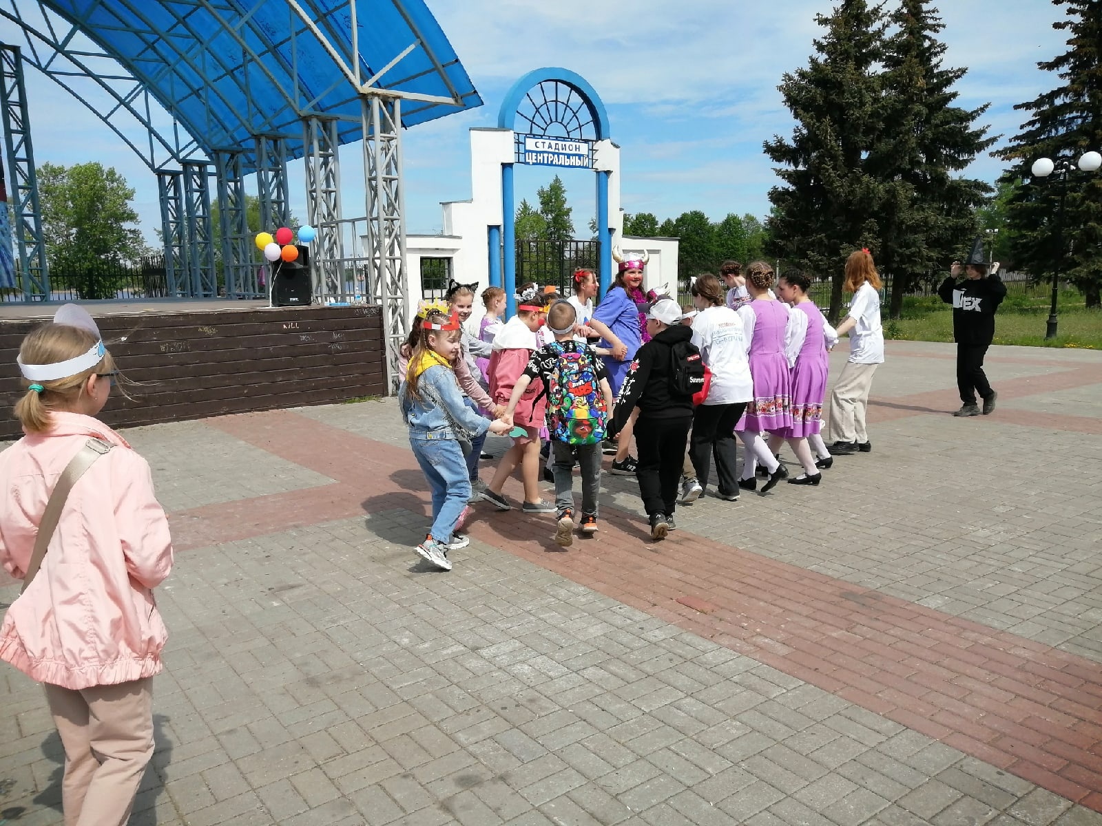 На площади у фонтана под веселую музыку детства собрались школьники и жители города. Для них педагоги Истока подготовили увлекательные мастер-классы, а творческие коллективы концертно-игровую программу. Веселье, радость и детский смех слышался в центре города. Зажигательная Пеппилота и её помощники играли и веселили детей, создавая яркое настроение.