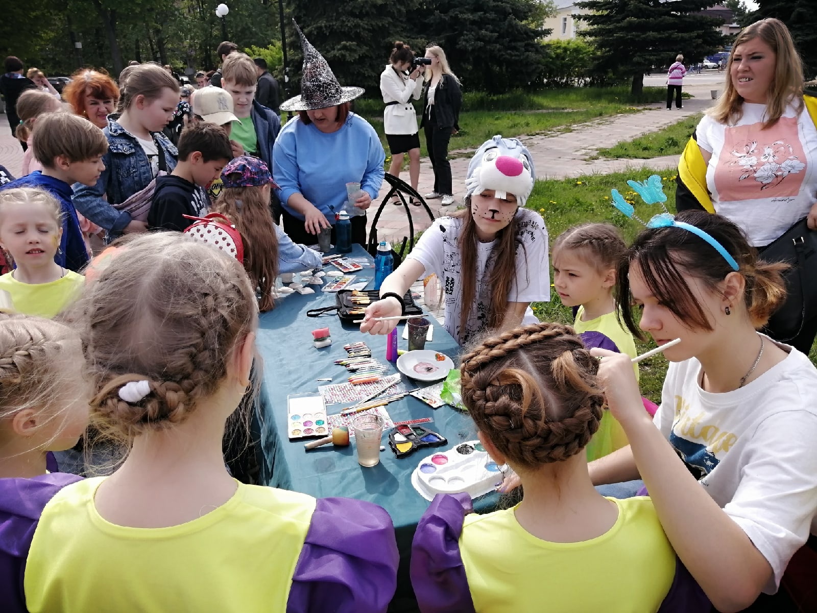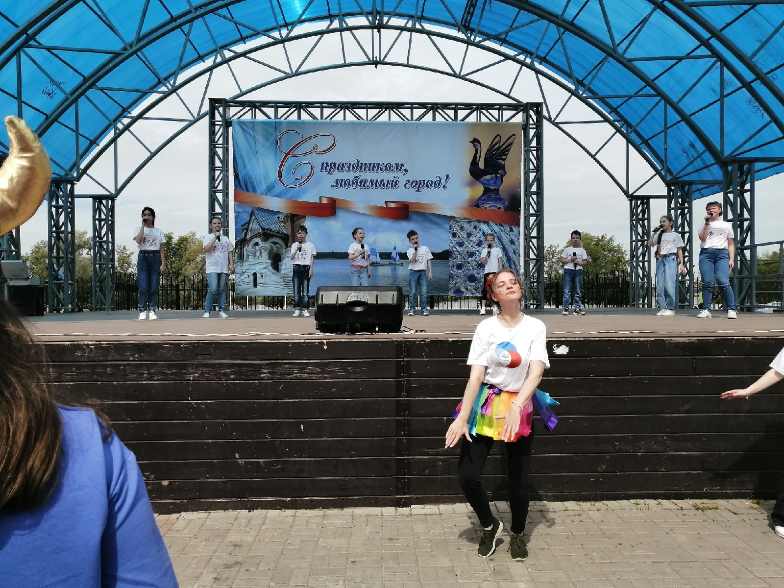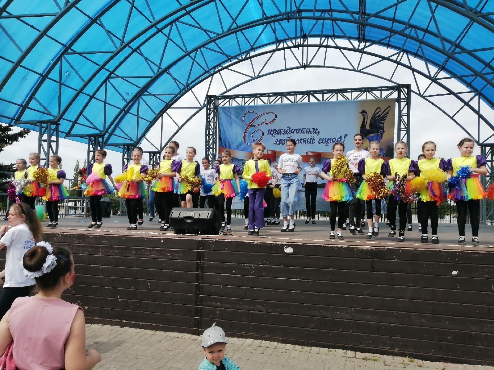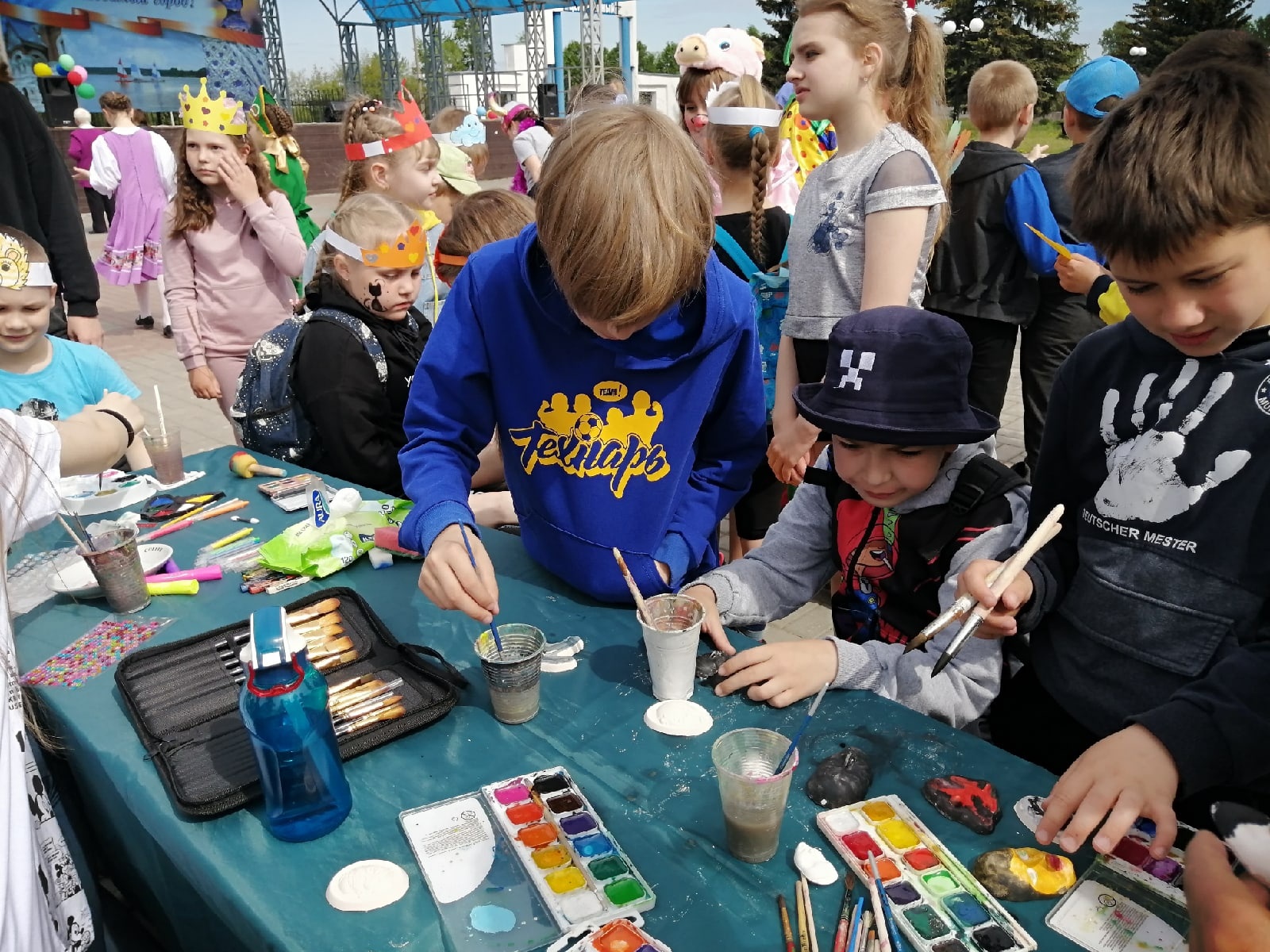 На площади у фонтана под веселую музыку детства собрались школьники и жители города. Для них педагоги Истока подготовили увлекательные мастер-классы, а творческие коллективы концертно-игровую программу. Веселье, радость и детский смех слышался в центре города. Зажигательная Пеппилота и её помощники играли и веселили детей, создавая яркое настроение.