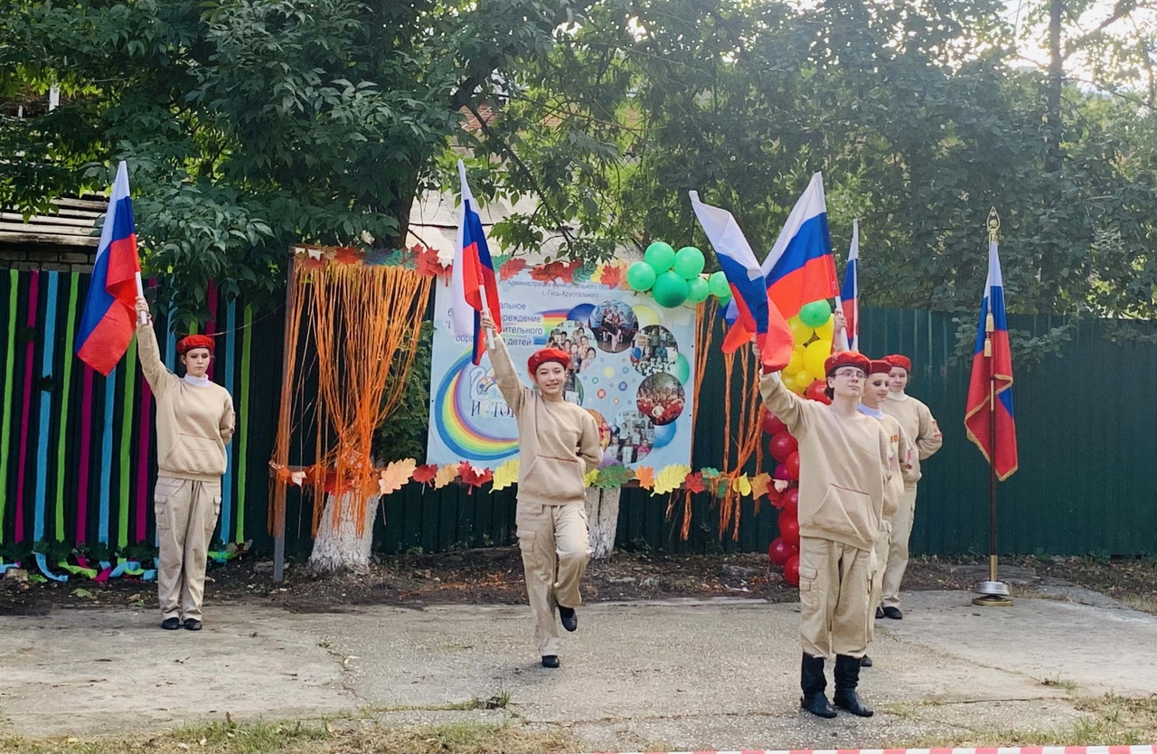 Ребят и их родителей поприветствовала Татьяна Владимировна Причепа - начальник управления образования г. Гусь-Хрустальный. Директор Центра Алла Витальевна Рыбина пожелала новым воспитанникам творческих успехов, достижения новых высот, отличного настроения. Даже дождь и холодная погода не помешали состояться детскому празднику.