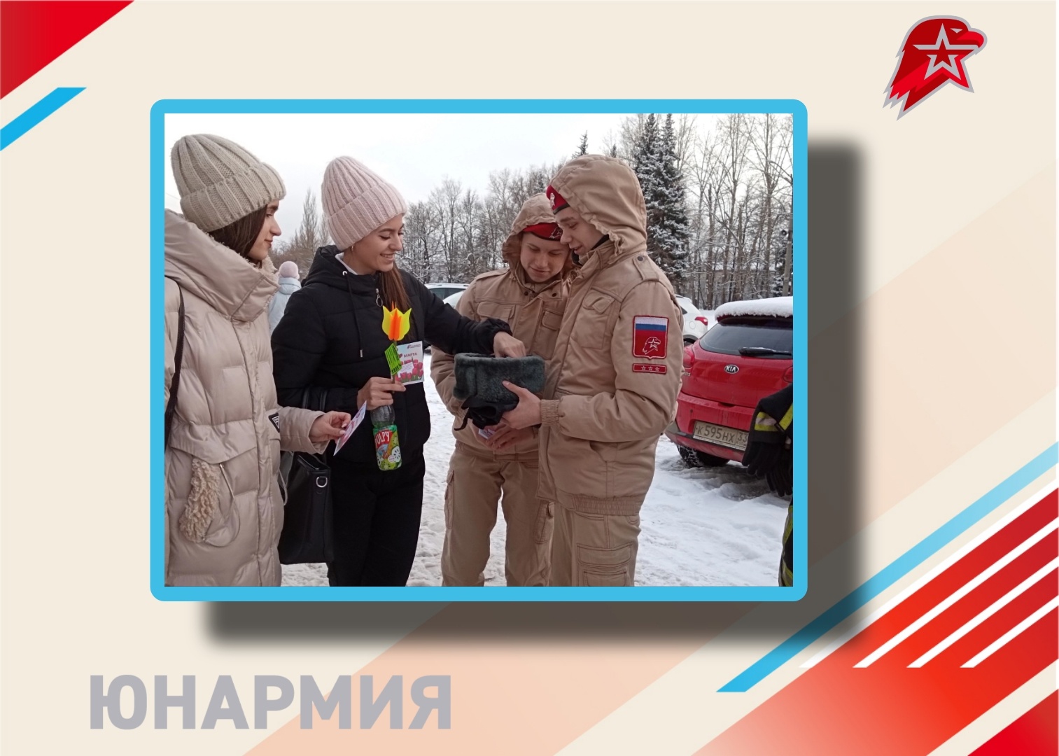В преддверии Международного женского дня наши юнармейцы вышли на улицы города, чтобы поздравить милых дам с самым весенним праздником.
