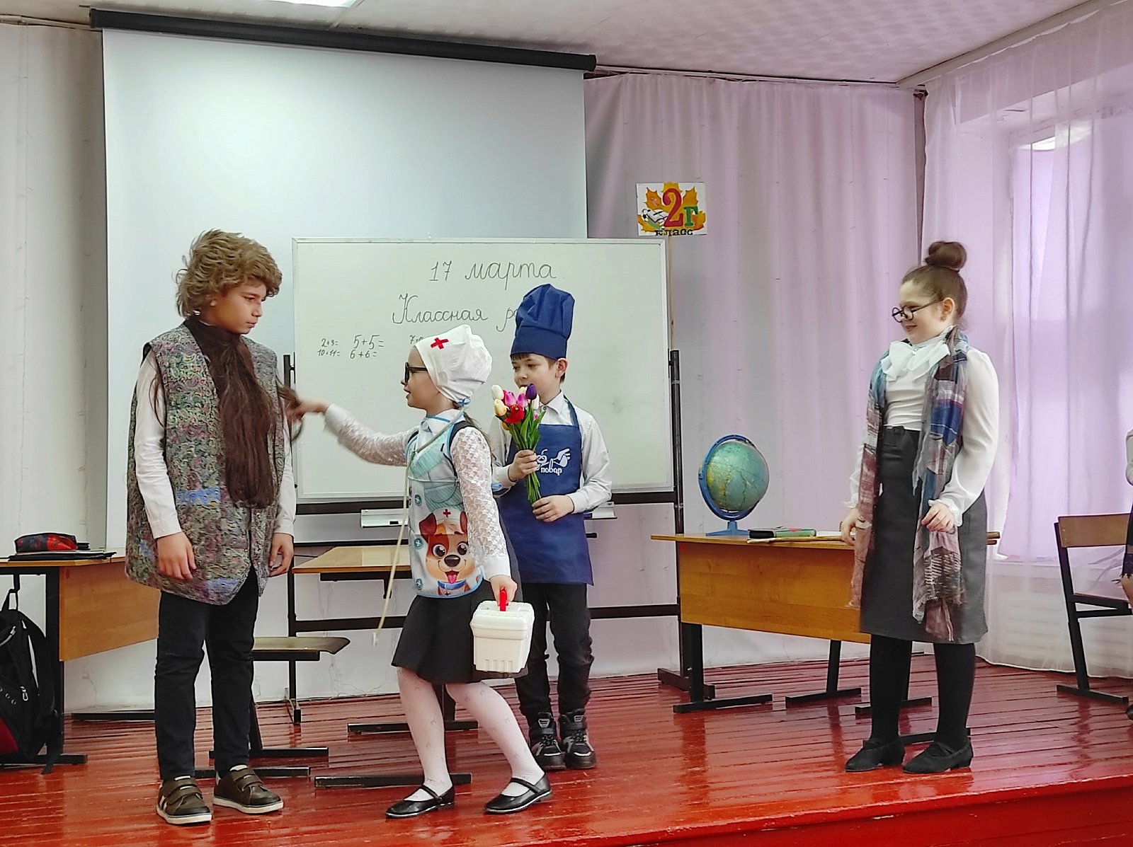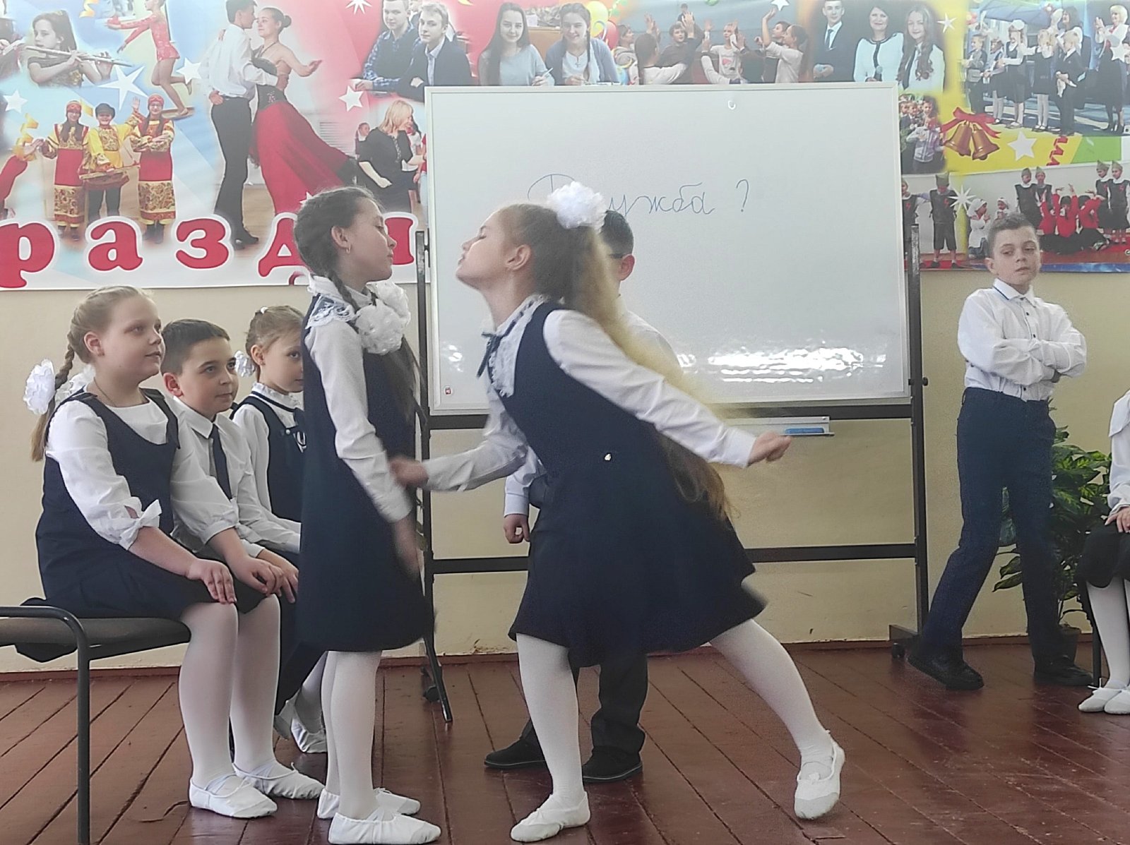 В МБОУ "СОШ 4" юные актёры школьного театра "Театральное вдохновение" показали инсценировку "Весёлая перемена".